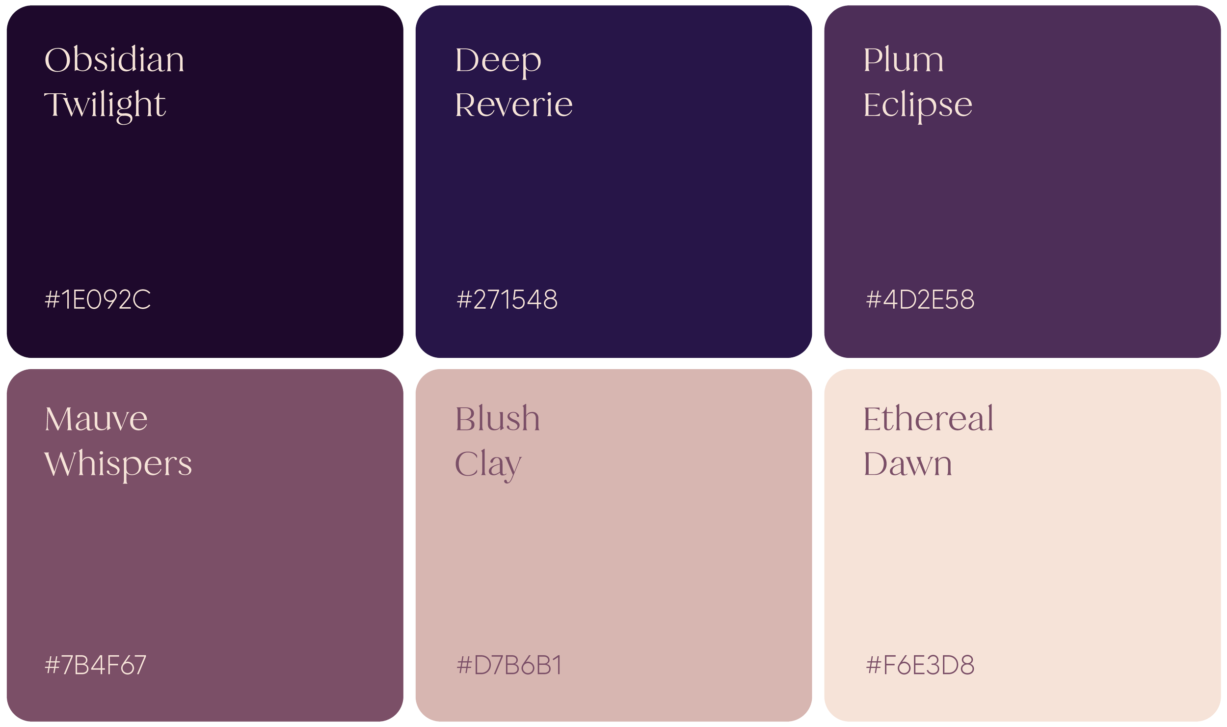 Color Palette: A palette of soft purple hues was chosen to evoke feelings of peace, calmness, and healing energy, while maintaining a modern and approachable aesthetic.